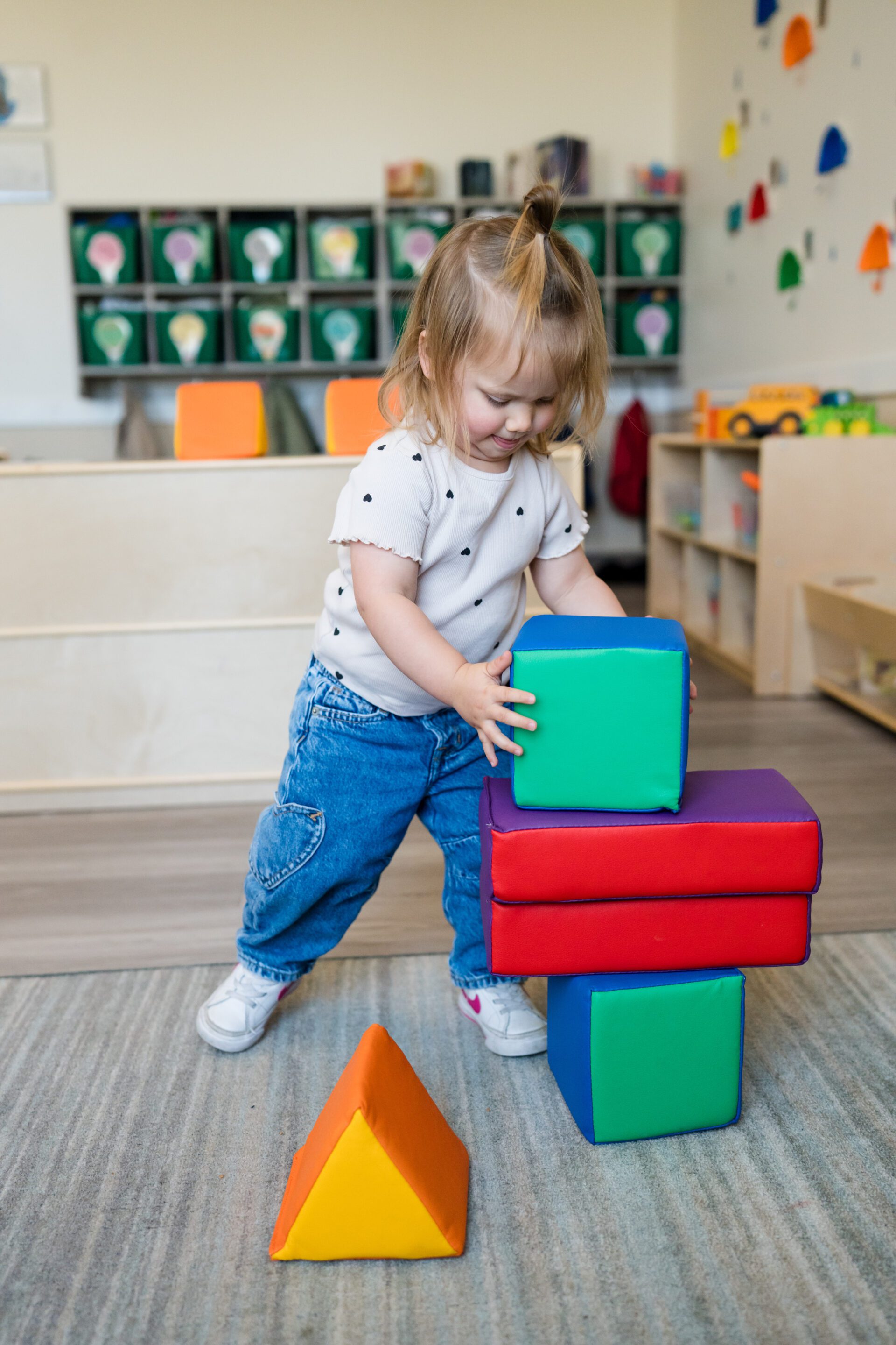 Every toddler’s day blends discovery, connection, and fun. Teachers guide children through a balance of active exploration and calm moments of care, helping them practice new skills while being seen and supported.
