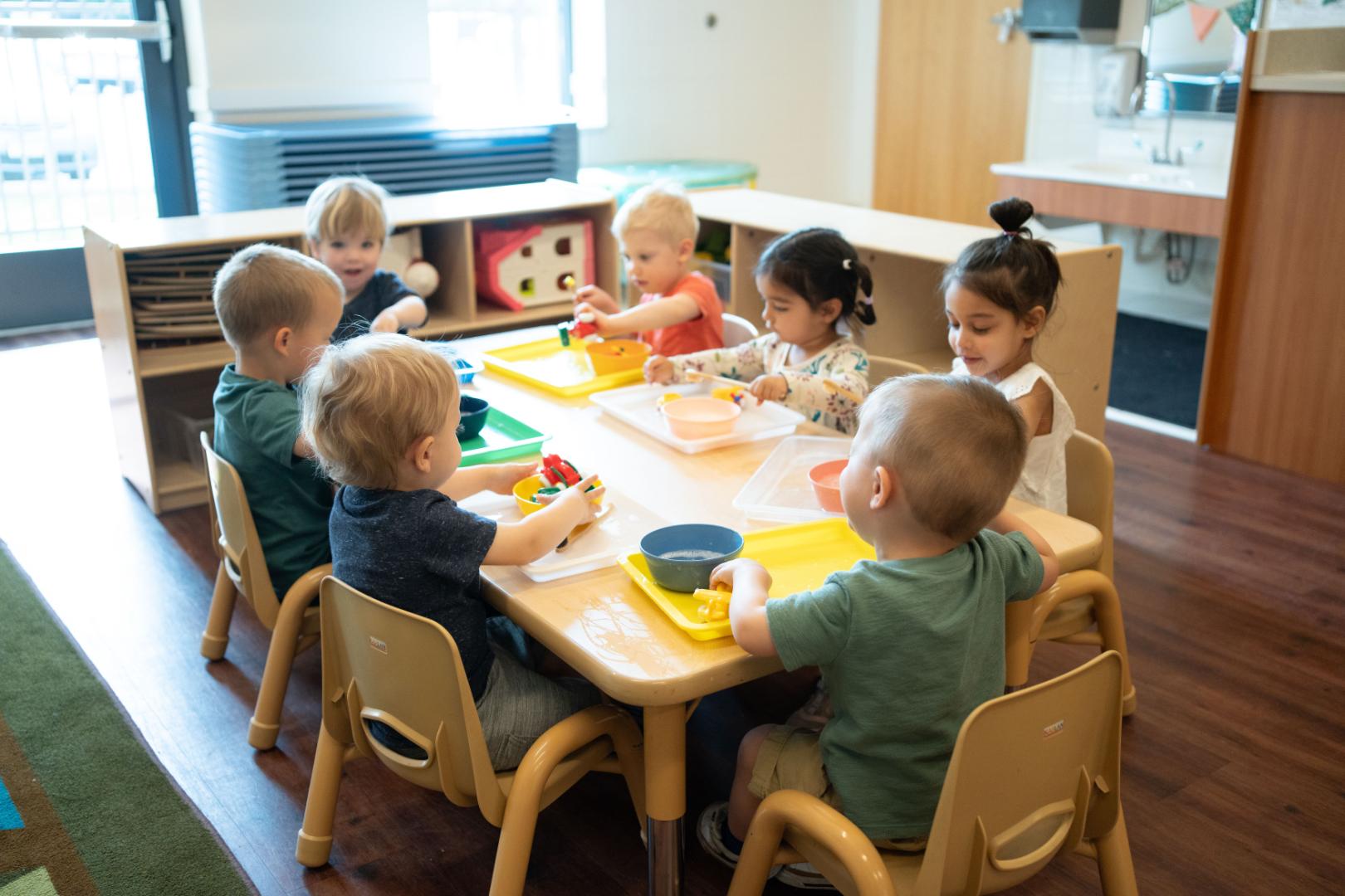Two secure entry checkpoints, clean classrooms, and predictable routines help children feel safe and supported. Healthy meals and snacks are served daily in the Kids Café, and a comfortable nursing room is available for families.