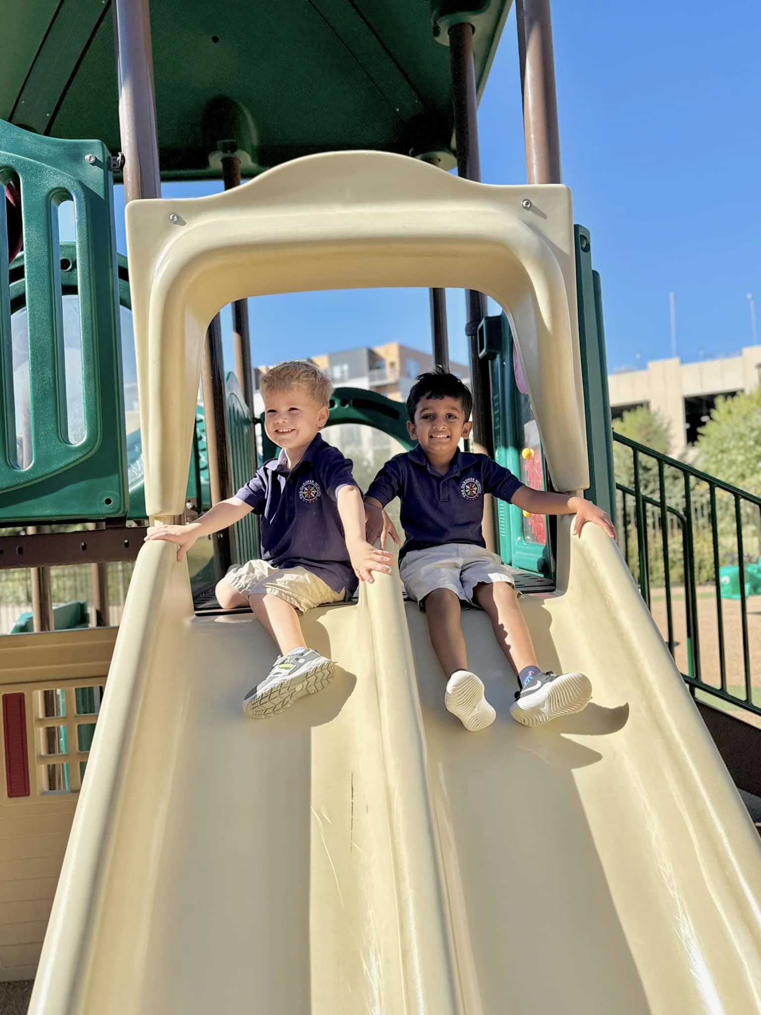 Our highly trained teachers guide learning through a research-aligned curriculum that blends early literacy, math, problem-solving, and hands-on exploration. Each child is regularly assessed and supported at their own pace, helping them build confidence and independence. With bright classrooms, a private nursing room, and safe indoor and outdoor play areas, our school provides a welcoming environment that feels both warm and thoughtfully designed for young learners.