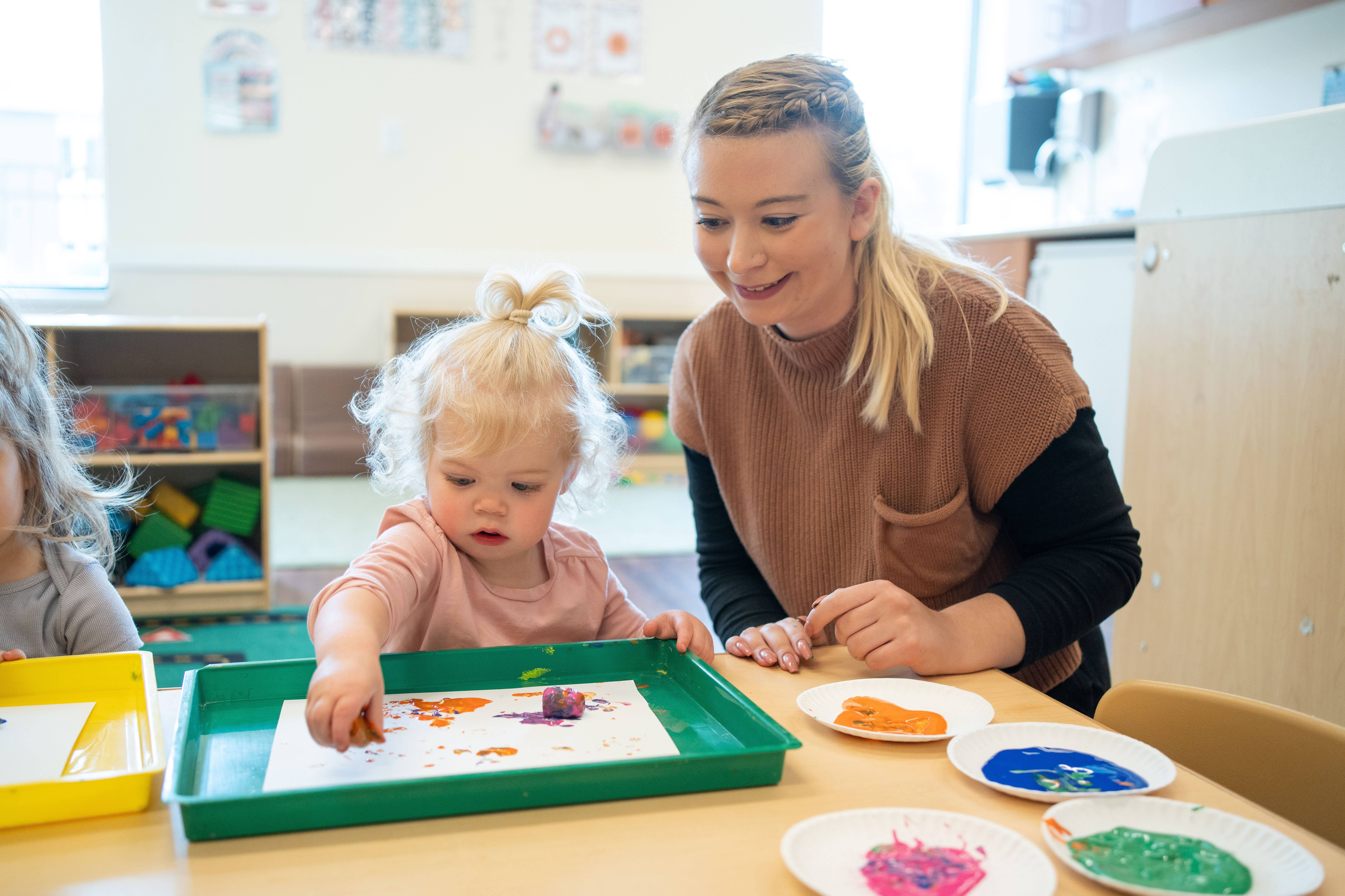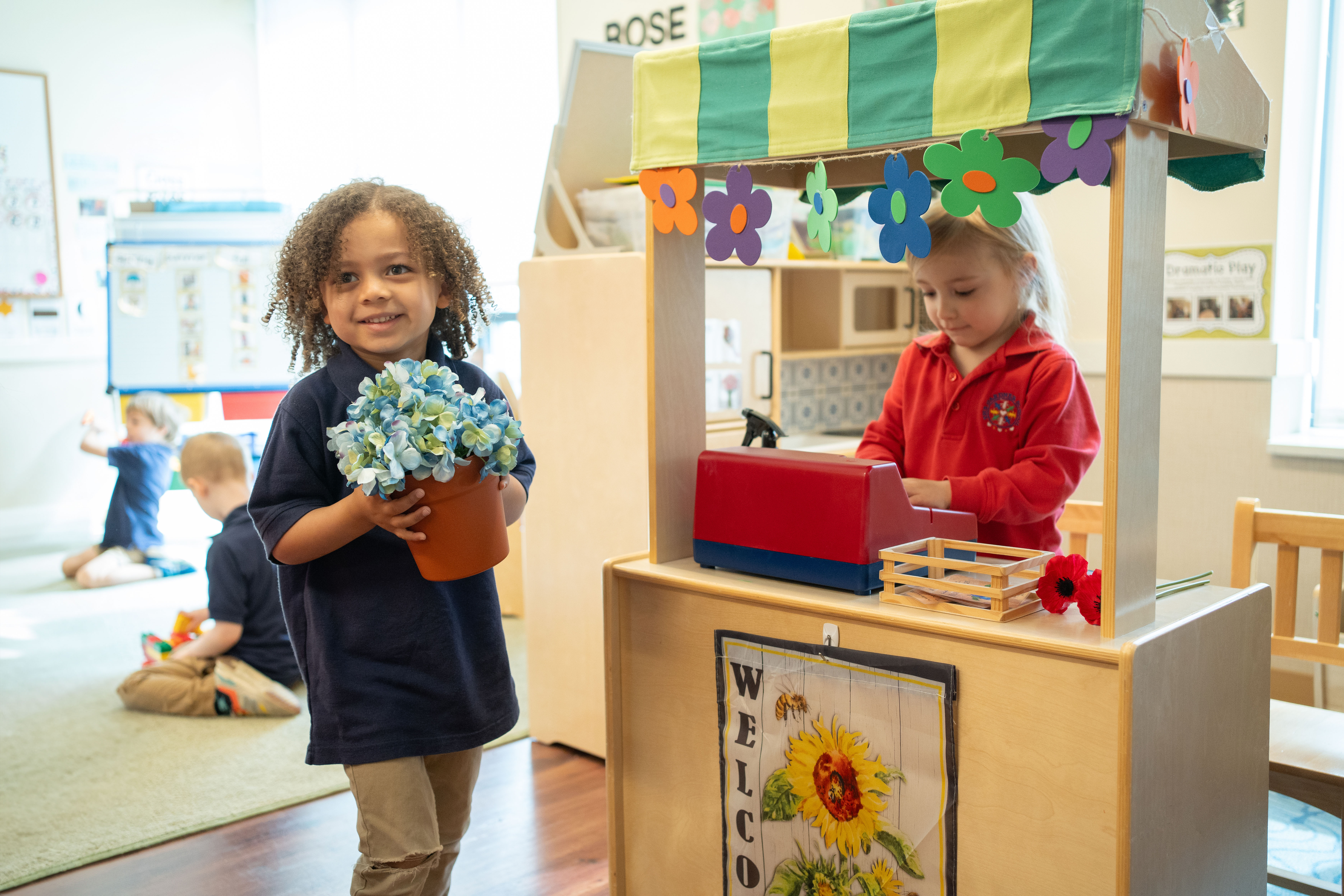 • Our research-based curriculum supports early literacy, math, creativity, problem-solving, and social-emotional development. Teachers guide children through purposeful play, hands-on learning, and consistent routines that build confidence and strong academic foundations.