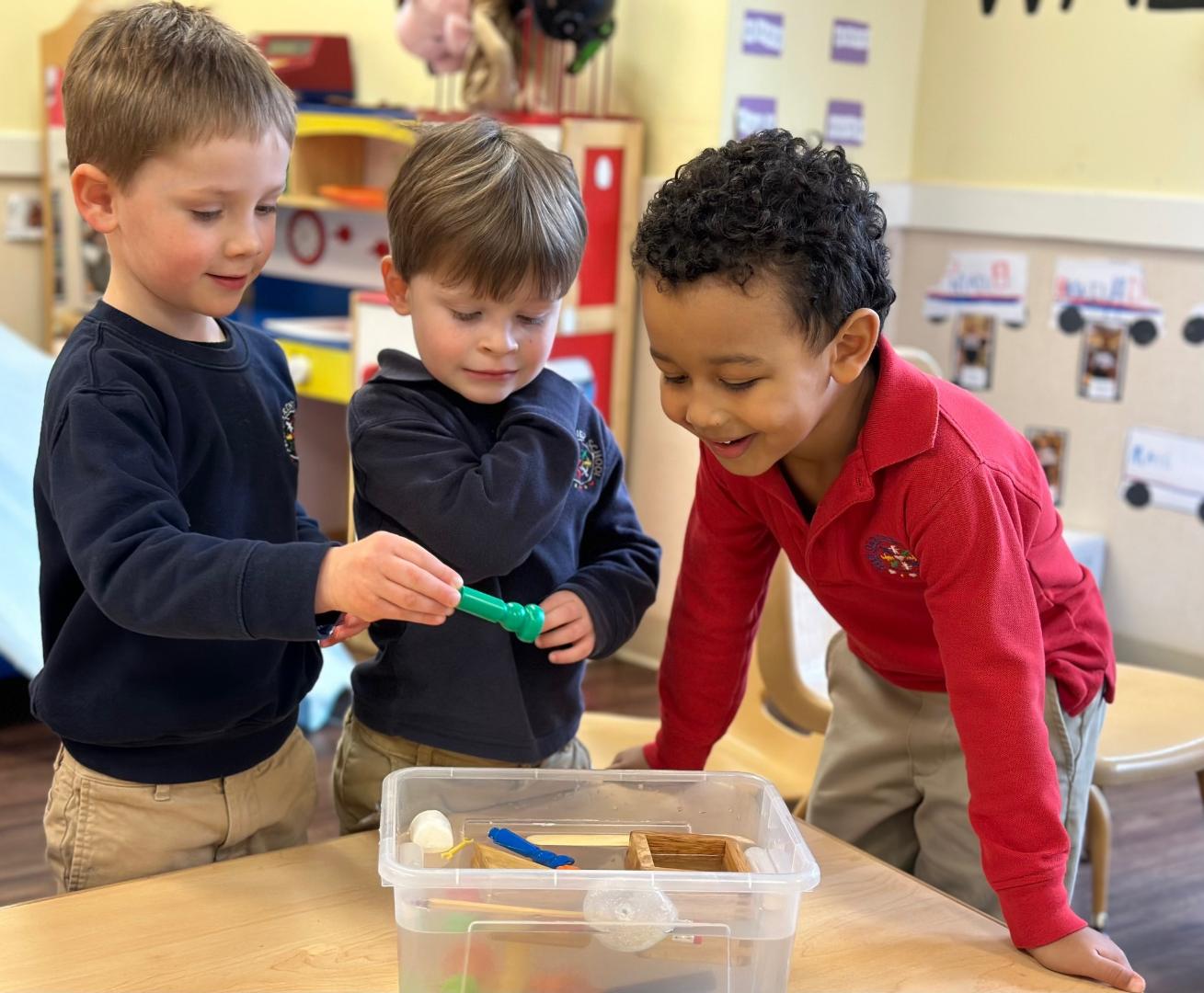Our research-based curriculum supports early literacy, math, creativity, problem-solving, and social-emotional development. Teachers guide children through purposeful play, hands-on learning, and consistent routines that prepare them for kindergarten and beyond.