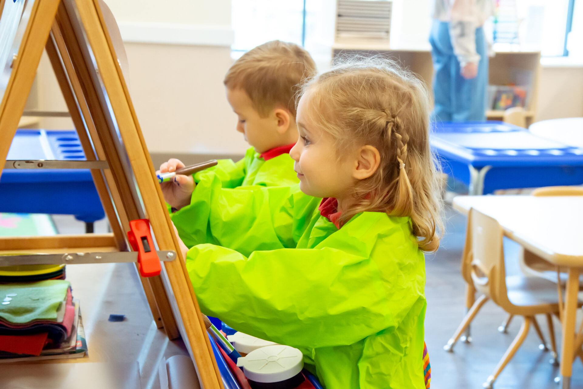 Spacious classrooms with large windows, vibrant indoor and outdoor playscapes, and inviting enrichment areas help children feel energized, safe, and ready to explore. Teachers guide early literacy, math, social-emotional learning, and problem-solving through hands-on activities and purposeful play. With a Kids’ Café, enrichment studio, S.T.E.A.M. lab, and a private nursing room, families will find thoughtful touches throughout the school that support comfort, connection, and joyful learning.