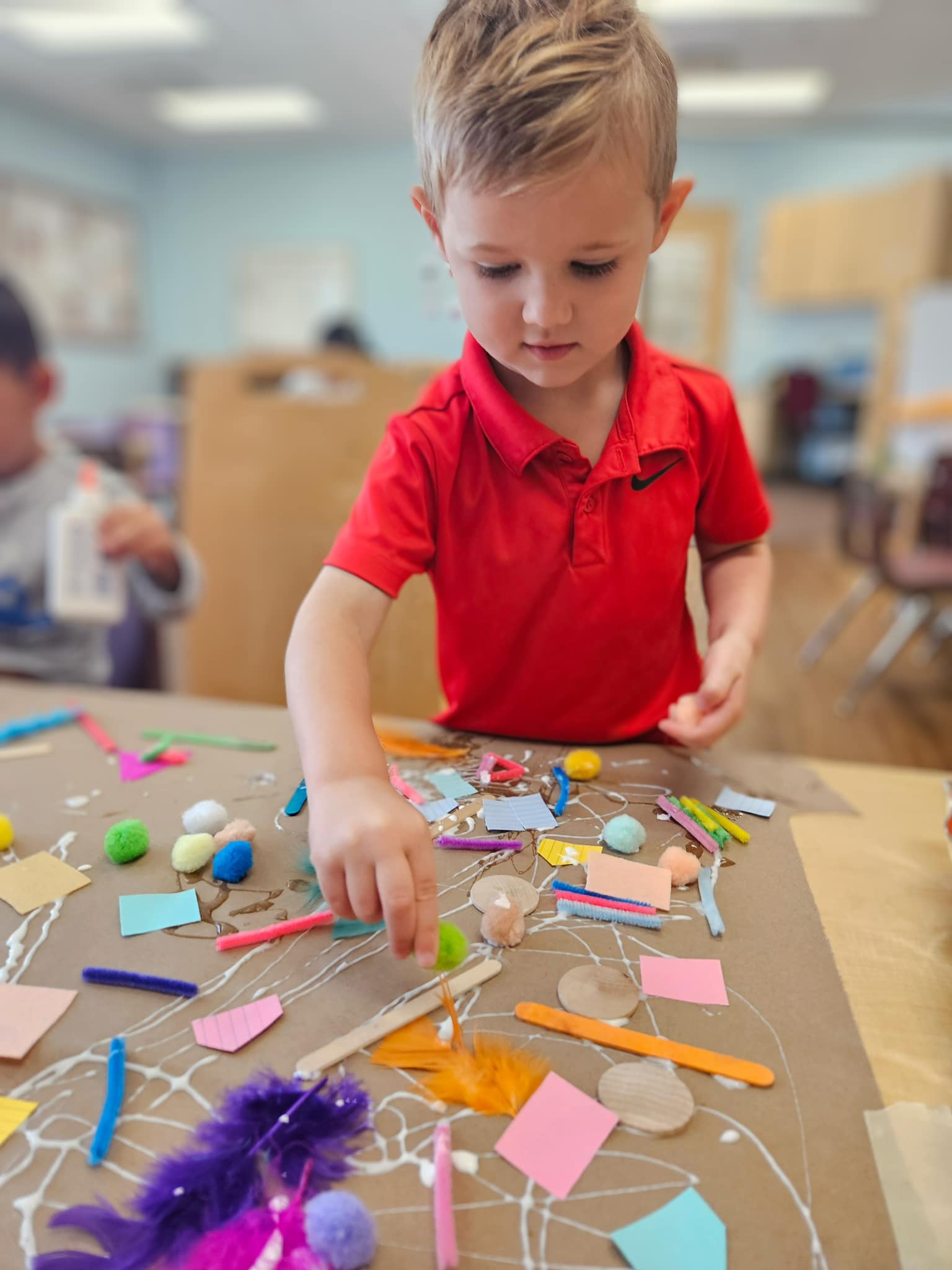 Our blended, research-based curriculum supports early literacy, math, creativity, problem-solving, and social-emotional development. Teachers guide learning through purposeful play, hands-on activities, S.T.E.A.M. lab (Science, Technology, Engineering, Art, and Math), and responsive teaching tailored to each child’s developmental stage.